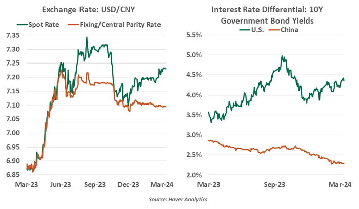 With the Fed unlikely to cut before September 2024 and China trying to fend off deflation, the pressure on the currency is likely to persist in the near term. While some see manipulation behind the yuan’s decline, it is more likely the result of natural causes. The United States, and China’s other trading partners, should keep this in mind.