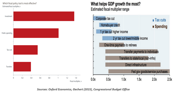 Even with a full inventory of causes and effects, calculating their magnitudes is very difficult. The science (if it can be called that) focuses on “fiscal multipliers,” which relate the cost of a policy to the amount of economic activity it generates. A fiscal multiplier of more than one signifies the program generates incremental output that exceeds its cost. (It should be noted that this is not the same as saying that the program “pays for itself,” since incremental tax revenue is far less than incremental national income.)
