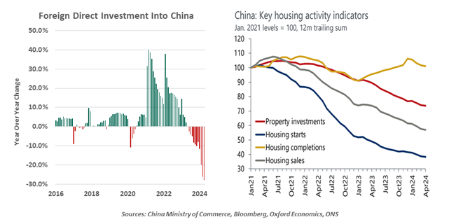 Official measures of real growth are still aligned with the country’s 5% target, but consumer confidence and spending are soft, export growth has slowed, and business investment has slumped. China is experiencing its largest capital outflows in 15 years, and its equity markets are significantly underperforming.