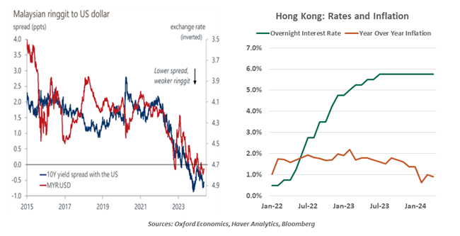 Higher-for-longer interest rates in the United States are causing a great deal of discomfort in the region. Hong Kong provides a case in point: real gross domestic product (GDP) in Hong Kong is still below its 2019 level, and asset values are under pressure. Inflation is less than 1% over the past year, and falling.