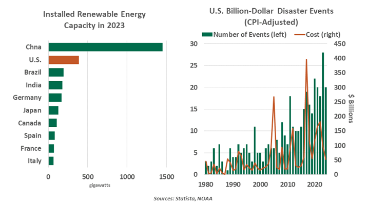 The consequences of climate change are growing. 2023 was the warmest year on record in the U.S. The country witnessed 28 extreme weather events, causing $95 billion in damage and displacing 2.5 million Americans. Warmer sea temperatures added to the strength and persistence of Hurricanes Helene and Milton this year. Insurers took a large hit, losing money on homeowners' coverage in 18 states across the nation.